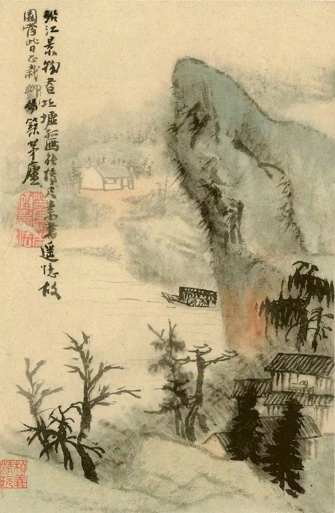 石涛的山水画构图新颖,意境深远。在《孤舟独眠山水册》中,他打破传统的构图模式,以孤舟为中心,将周围的景物巧妙地组织在一起,形成一种独特的画面结构。同时,他通过细腻的笔触和丰富的墨色变化,营造出一种静谧、幽远的意境,令人仿佛置身于山水之间,感受到大自然的宁静与和谐。