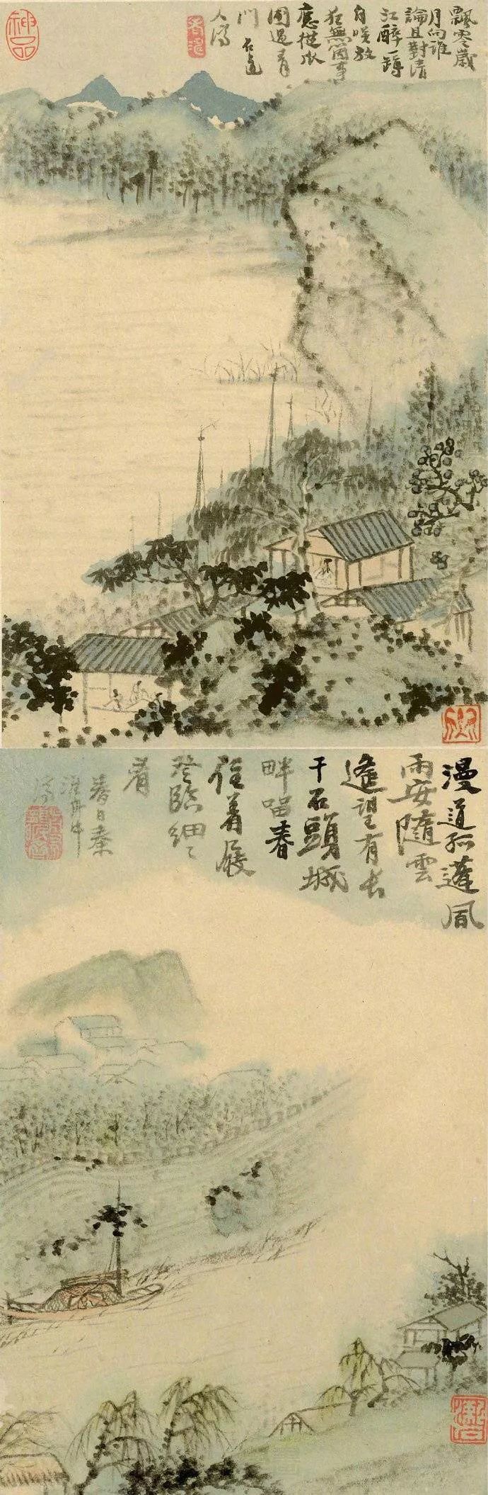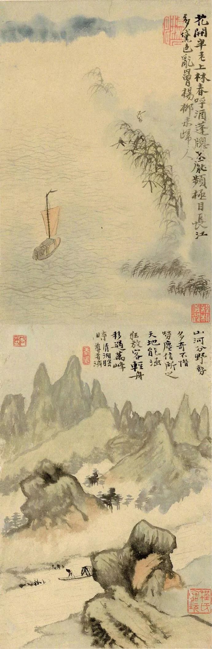 总之,《孤舟独眠山水册》是石涛山水画的代表作之一,展现了其独特的艺术风格和深厚的笔墨功底。通过对这幅画作的欣赏和分析,我们可以更加深入地了解石涛的艺术思想和创作理念,感受到他笔下的山水之美和意境之深。