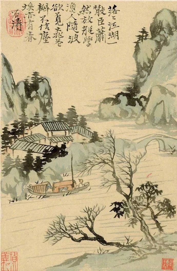 石涛不仅擅长绘画,还精通诗文。在《孤舟独眠山水册》中,他将自己的诗意融入画作之中,通过题画诗的形式,进一步丰富了画面的内涵和意境。诗书画的结合,使他的艺术达到了高度统一,展现出一种独特的艺术魅力。